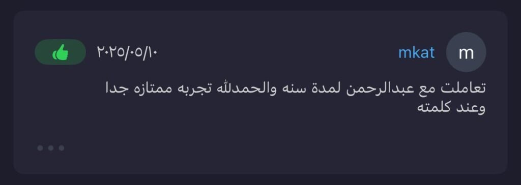 تعاملت مع عبدالرحمن لمدة سنة والحمدلله تجربة ممتازة جداً وعند كلمته.